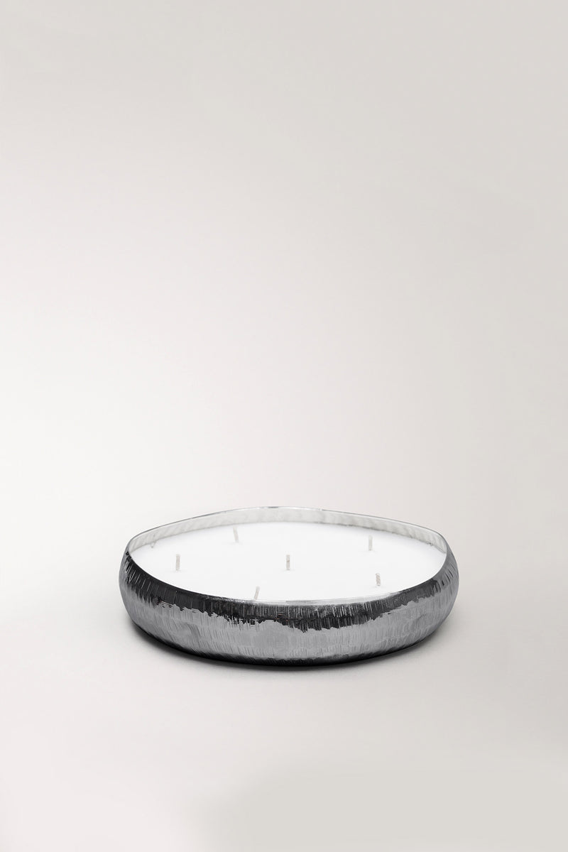 Inspired by tradition, the Nickel Festive Tray features a gently hammered that shines with festivity. A Damask rose fragrance complements the design of this tray, and with notes of geranium, lemon and apple perfectly sets the tone for a festive party.